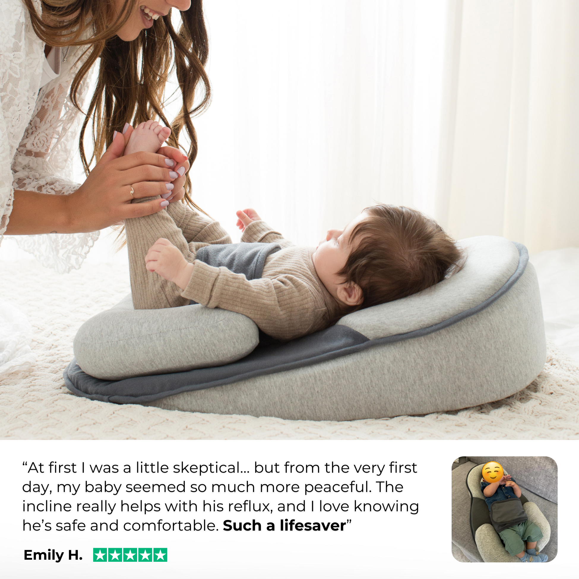 The 15° incline gently elevates your baby’s upper body, helping to keep stomach acid down and air bubbles moving, two of the main causes of reflux and colic.